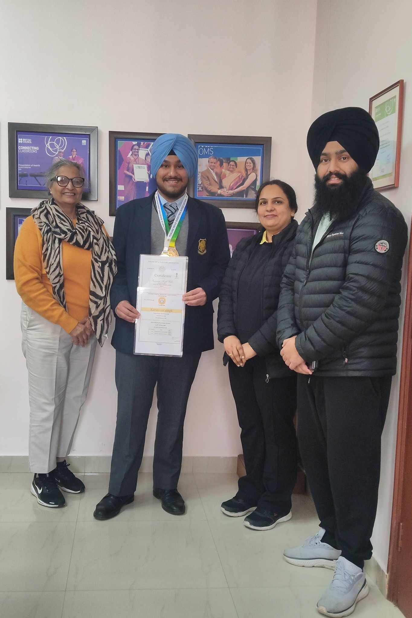 Showcasing remarkable focus, discipline, and determination, Karanveer clinched the Gold Medal at the District Level under the aegis of the District Rifle Shooting Association. He continued his winning streak by securing the Gold Medal at the State Level organized by the Punjab Rifle Shooting Association.